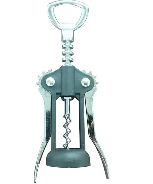 まず最も一般的なのが「ウィング式(バタフライ式)」です。コルクにスクリューを差し込み、両側の「羽」を押し下げることでコルクを引き抜くタイプです。