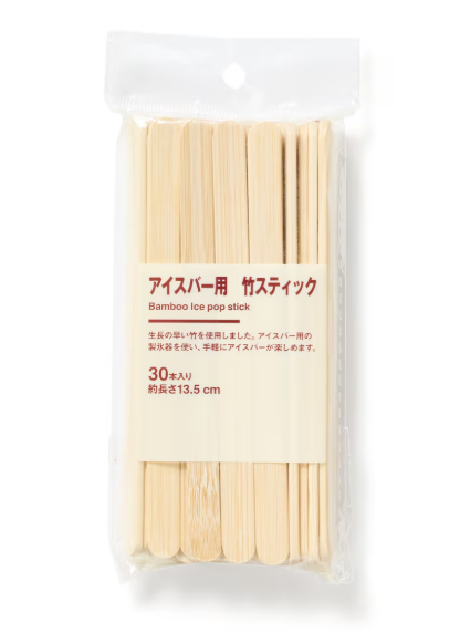 無印良品では「アイスバー用 竹スティック」として30本入りが150円で販売されています。