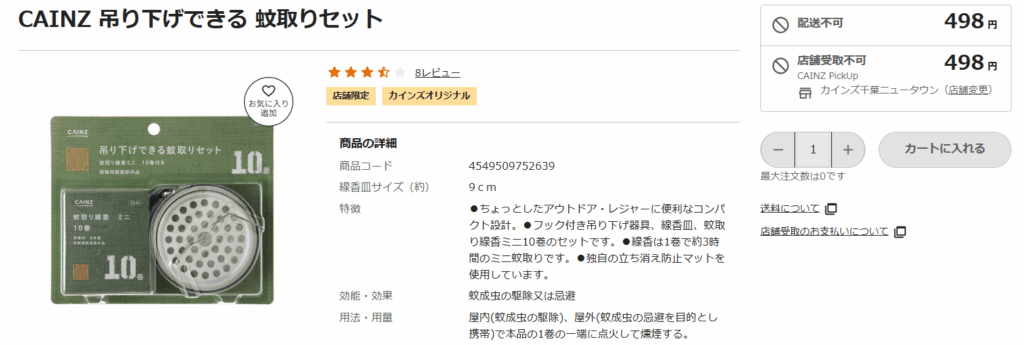 一般的なスーパーマーケットやコンビニエンスストアでも、基本的には取り扱いがありません。これらの店舗では、より需要の高い基本的な虫除けスプレーや電子式蚊取り器が中心となっているのが実情です。