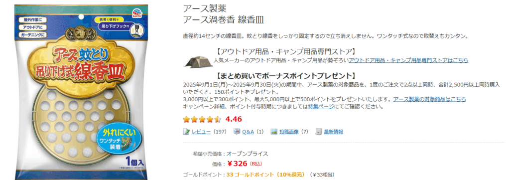 家電量販店のヨドバシカメラやビックカメラでは、蚊取り線香の缶がそのままホルダーになる便利な商品も販売されており、ポイント還元の恩恵も受けられます。