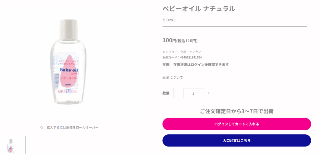 100均でのベビーオイル事情は、少し複雑になってきています。ダイソーでは現在も50mlサイズのベビーオイルを110円で販売していて、「ちょっと試してみたい」という方にはぴったりのサイズですね。