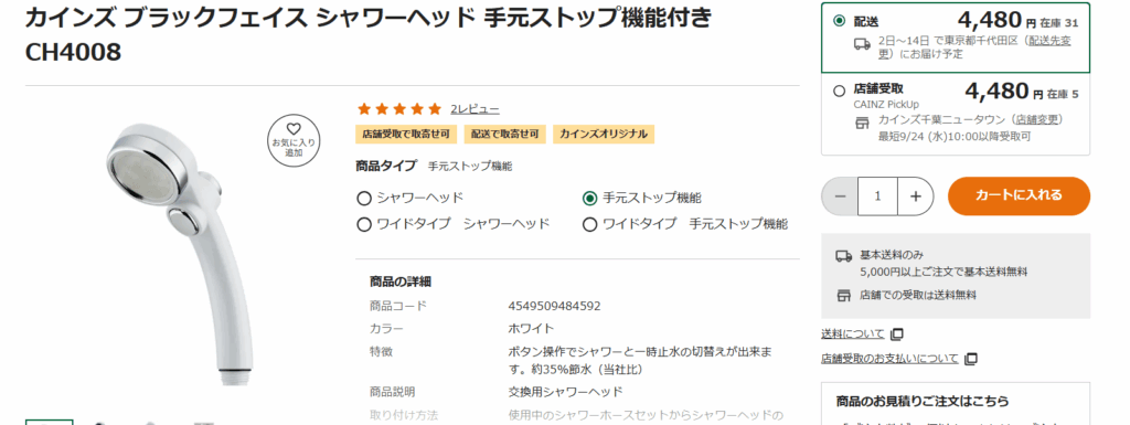 カインズ、コーナン、コメリなどのホームセンターは、シャワーヘッドの品揃えが非常に充実しています。