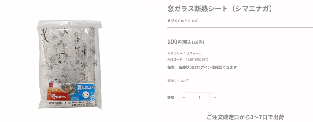 - ダイソー:断熱・遮熱シート110円、夏冬両用