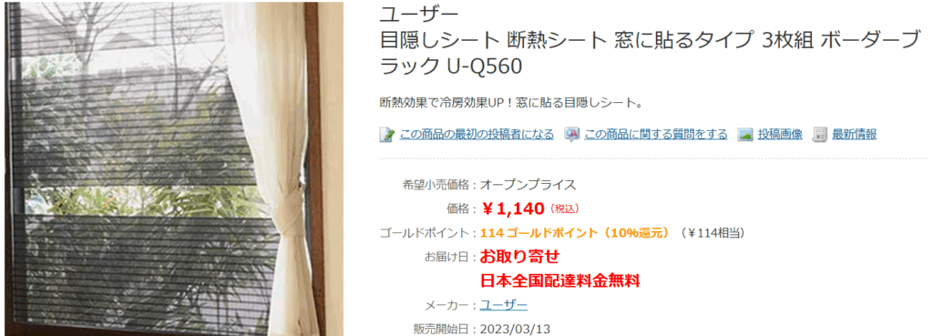ヨドバシカメラでは遮熱・断熱効果のある商品を、ビックカメラでは目隠しシートを取り扱っています。目隠しシートも日除け効果があるので、プライバシー保護と暑さ対策を同時に解決したい方にはおすすめです。