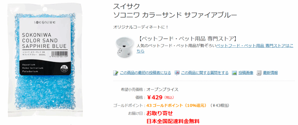 意外かもしれませんが、ヨドバシカメラやビックカメラでもカラーサンドを購入できます。