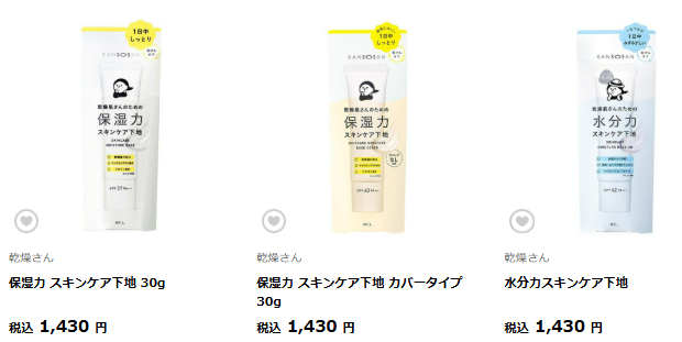 最もベーシックな「乾燥さん 保湿力スキンケア下地」は、高保湿でありながら軽いつけ心地が特徴です。オールインワンタイプなので、これ一つでスキンケアと化粧下地の役割を果たしてくれるんですよ。