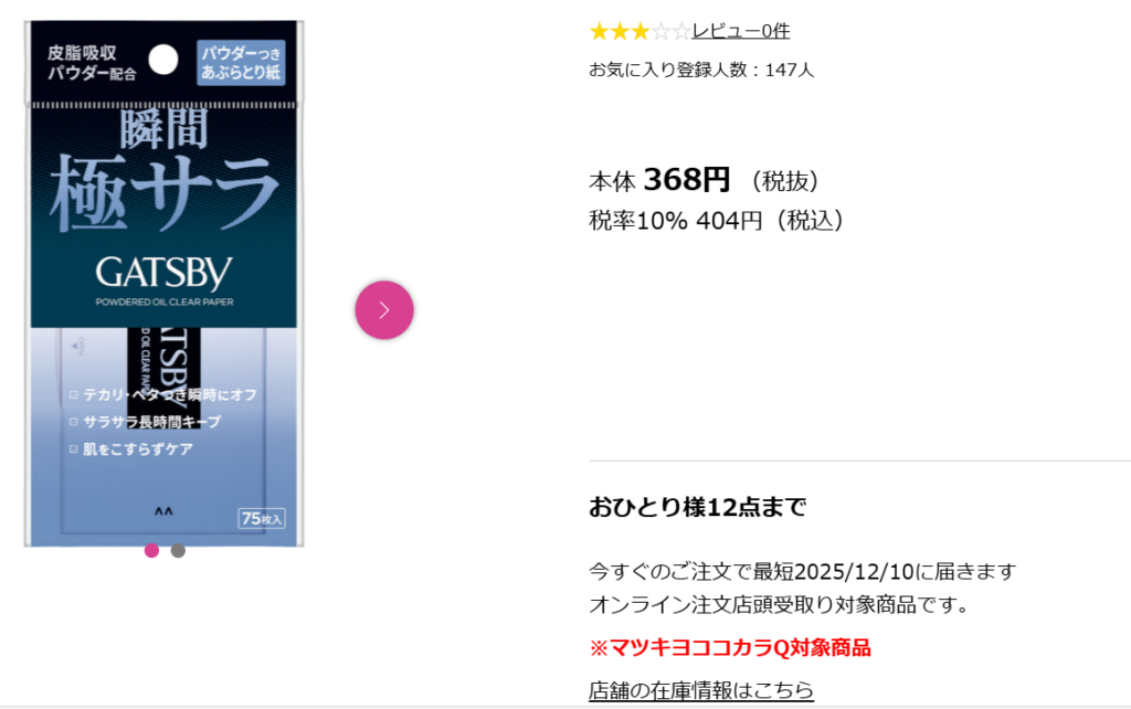 - コンビニやドラッグストアでギャツビーのあぶらとり紙は売っていますか?