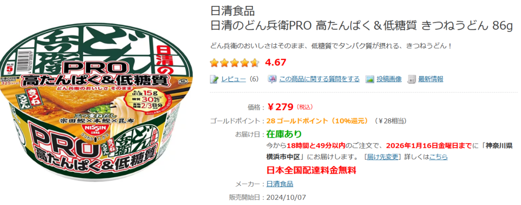意外かもしれませんが、ヨドバシカメラでもどん兵衛プロが販売されています!ヨドバシやビックカメラなどの家電量販店は、日用品や食品、文房具も取り扱っているんです。