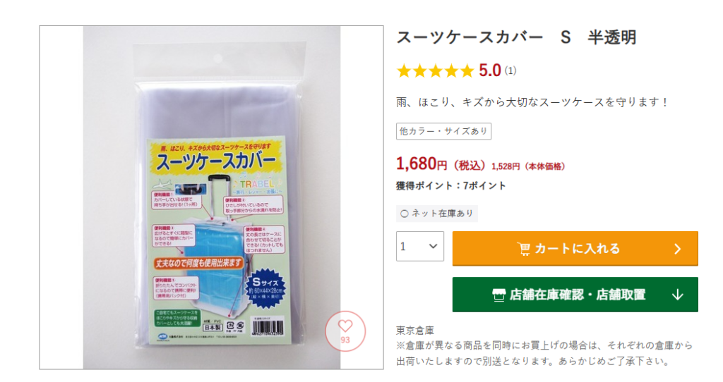 スーツケースの宅急便カバーは専門性の高い商品なので、意外と多くの店舗で取り扱いがないんです。