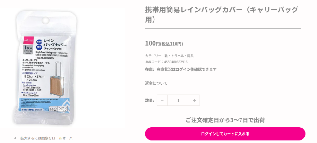 マツモトキヨシやウエルシアなどのドラッグストア、おしゃれな雑貨が300円で買える3COINSでも、スーツケースの宅急便カバーの取り扱いはありません。