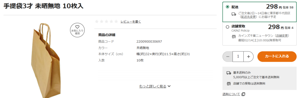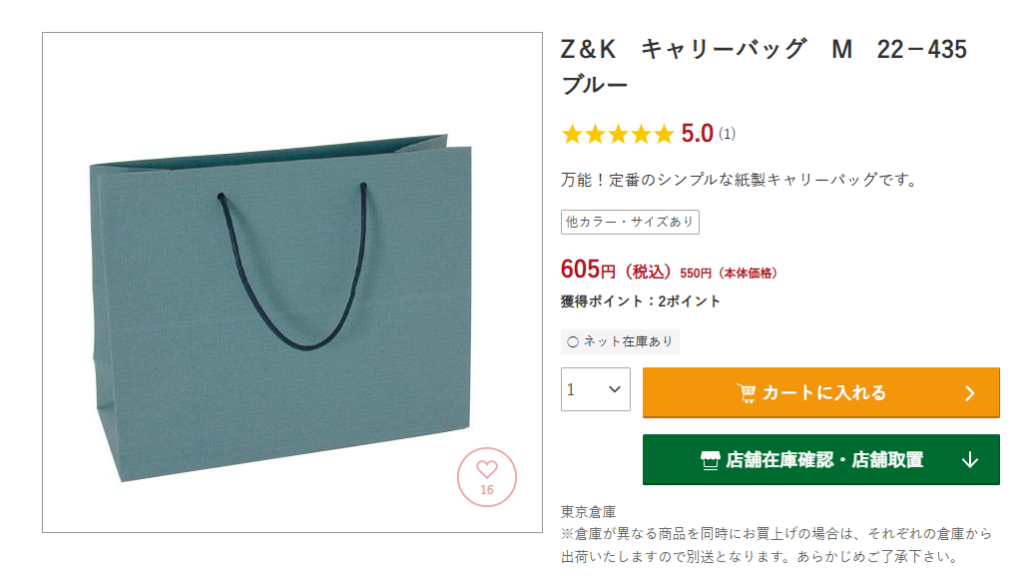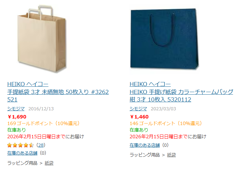 紙袋も量が増えると店舗で買っても持ち帰るのが大変なので、オンラインでの購入が便利ですね。