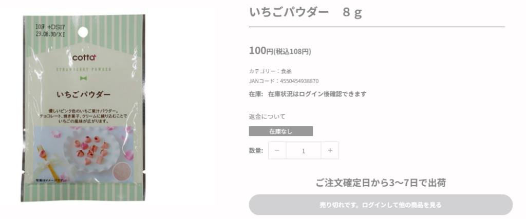 cottaでも、いちごパウダーが売っています。製菓材料専門店だけあって、品質の高いフリーズドライタイプが揃っています。オンラインストアで購入できるので、近くに店舗がない方も便利です。