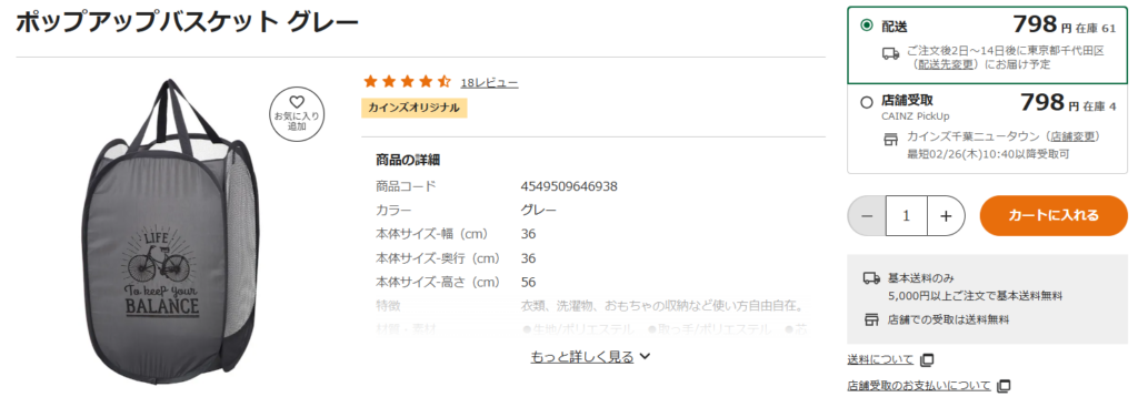 ただし、コーナンには、ホッピングバッグは売っていません。折りたたみできるランドリーバッグは売っていますが、ホッピングバッグに比べるとコンパクトさには欠けてしまいます。