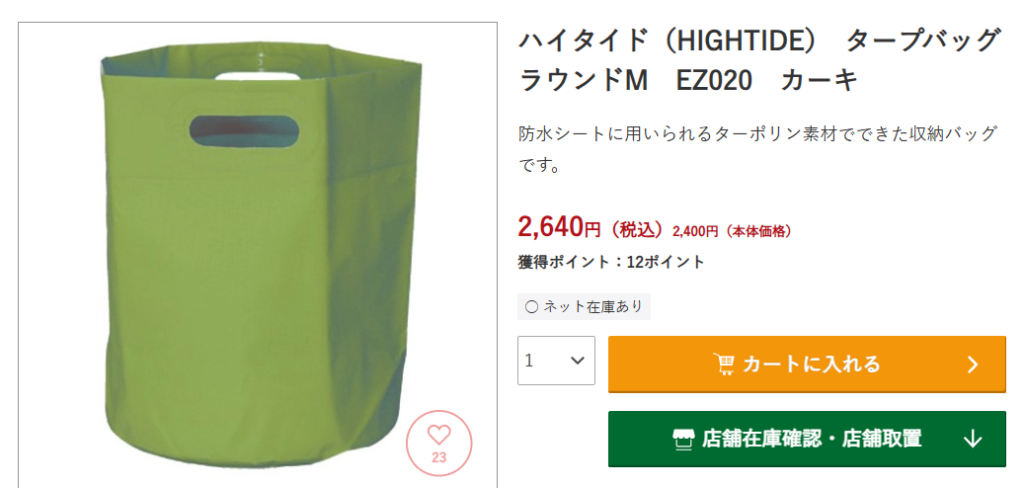 カインズではホッピングバッグが買えそうですね。カインズオリジナル商品で、価格もリーズナブル。大型店舗なら在庫も豊富なので、確実に購入できます。