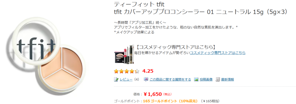 ドラッグストアやショッピングモールにはtfitコンシーラーは売っていませんでした。確実に買えるのは、Amazonや楽天市場です。