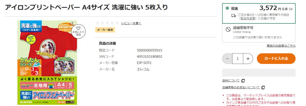 オンラインストアなら送料無料で、ポイントも10%付与されるのでお得。ビックカメラにも、アイロンプリントシートが売っています。家電量販店のオンラインショップは在庫が豊富なので、確実に手に入れたい方におすすめです。